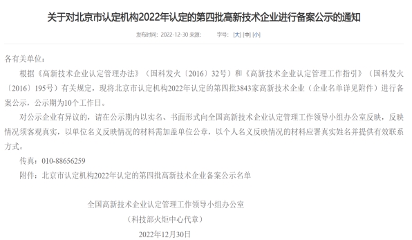 根據《高新技術企業認定管理辦法》(國科發火〔2016〕32號)和《高新技術企業認定管理工作指引》(國科發火〔2016〕195號)有關規定,現將北京市認定機構2022年認定的第四批高新技術企業進行備案公示。北京華飛興達環保技術有限公司名列其中。